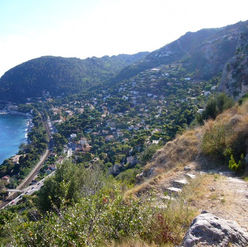 Niceニースからバスで30分ほどです。国鉄も走るには走っていますが、町が丘の上にあり、駅は海岸沿いであるため、しかも駅から村までは舗装もされていない荒れた道、「Le Chemin Nietzscheニーチェの道」と言われる道を通らねばならず、登りで2時間ほどはかかります。この道は哲学者ニーチェがその著書「ツァラトゥストラはかく語りき」を思案した道として有名です。なので、もし通るならば、行きはバスで村の目の前に着き、帰りにこの道を通って電車に乗る、というプランがお勧めです。